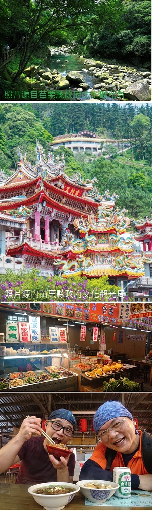 第1天 專車報到/出發~抵達南庄 ~ 蓬萊溪自然生態園區{賞魚步道} ~ 仙山靈洞宮&仙水亭 ~仙山美食廣場{午餐自理}~ 鳴鳳古道健走 ~ 仙山仙草店or清安豆腐街~ 泰安錦水溫泉泡湯