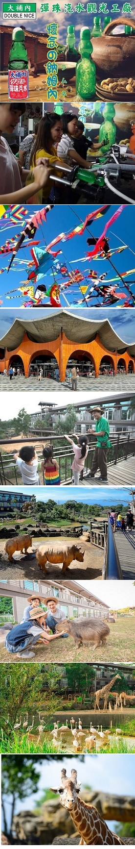 第1天 出發 ~ {2選1}【A】彈珠汽水觀光工廠{導覽+DIY+彈珠世界+汽水喝到爽!}~或~【B】南寮漁港海天一線單車遊 ~ 六福村樂園{2日劵} ~ 關西六福莊生態度假旅館 | 飯店內晚餐