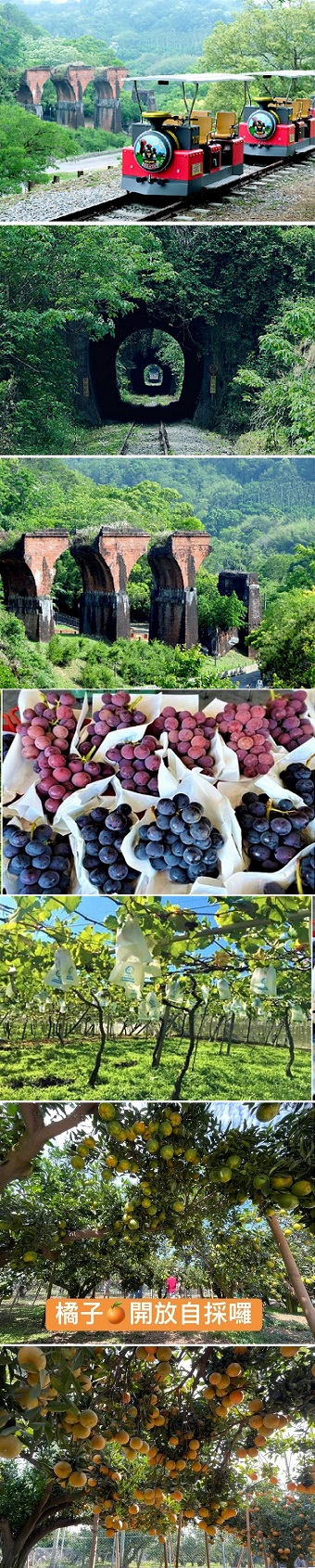 第1天 出發~Railbike舊山線鐵道自行車~笠園有機農園午餐~觀光果園採果{採葡萄、採楊桃、採椪柑…}~下榻飯店~屋馬燒烤(每人1500元代金)~逢甲夜市散策