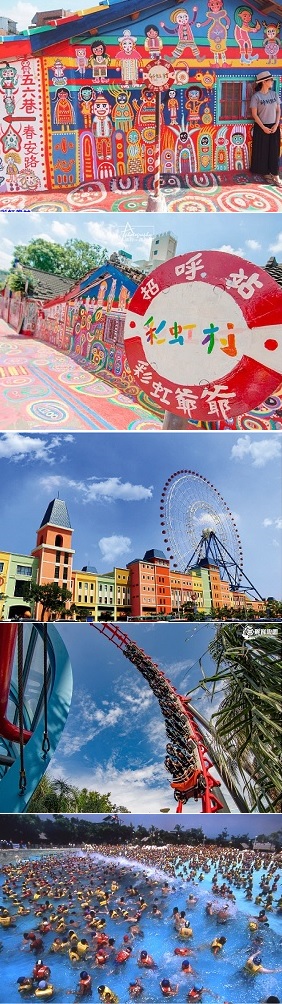 ●彩虹眷村:來自於老兵的夢幻奇蹟,色彩鮮豔、人物活潑、構圖童趣,將整個村子變成童話般的彩繪天地