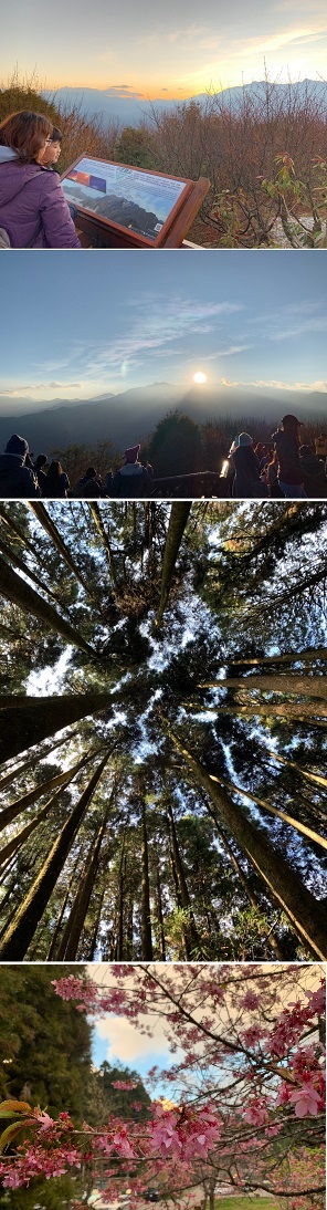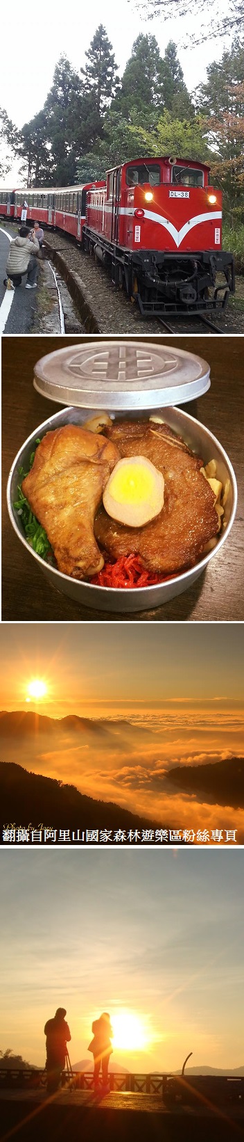 ●自由前往欣賞【阿里山晚霞夕照&雲海】阿里山森林遊樂園區內有3個欣賞夕陽雲海的地點:小笠原山觀景台、慈雲寺觀景台、阿里山車站2樓。