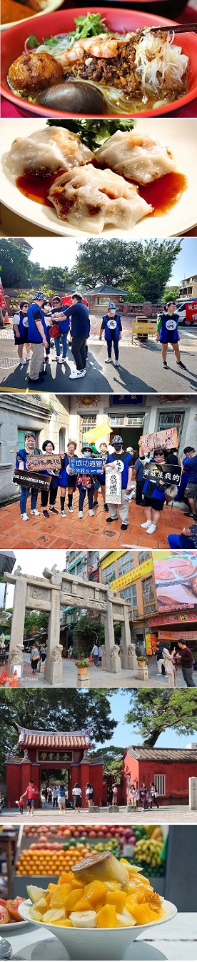 餐 食 早餐: [有安排]美味早餐 中餐: [有安排] 安平貴記小吃+飲料(250元/人) 晚餐: 海安路燒烤一條街或夜市自理{每人發300元代金}