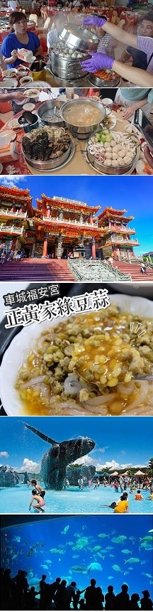 福安宮是恆春當地的信仰中心,正殿安立的土地公像全身掛滿金牌,據說是在清朝曾受乾隆皇帝褒封並賜王冠、龍袍一襲,顯得神威十足,是全省最為威風的的土地公。福安宮最大的特色在於金爐,這座金爐為三重簷的八角形建築、共有四層樓,有『神明點鈔機』之稱,當信眾把金紙放在金爐口時金紙就會自動飛入爐內,由於爐內有火焰形成氣旋因此空氣便會把金紙捲入,也可說是『神蹟』。福安宮也堪稱是前往墾丁或回程的『中途補給站』~必吃的『綠豆蒜』、必買的『紅仁鴨蛋』『松花皮蛋』、特色小吃『阿品芋粿』還有糯米大腸、香菇油飯!  福安宮後方的小吃廣場還有各式各樣美食:大腸包小腸、石板山豬肉、蚵仔煎、玉米、粉薑、芒果乾、刨冰、小米酒...應有盡有!!